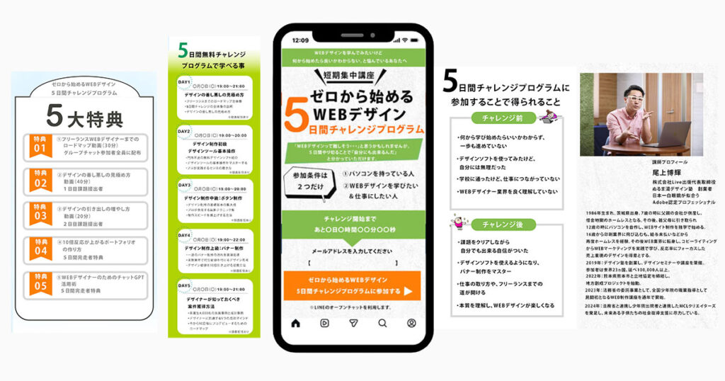 ・ 短期間で学べる「5日間チャレンジ」を強調し、